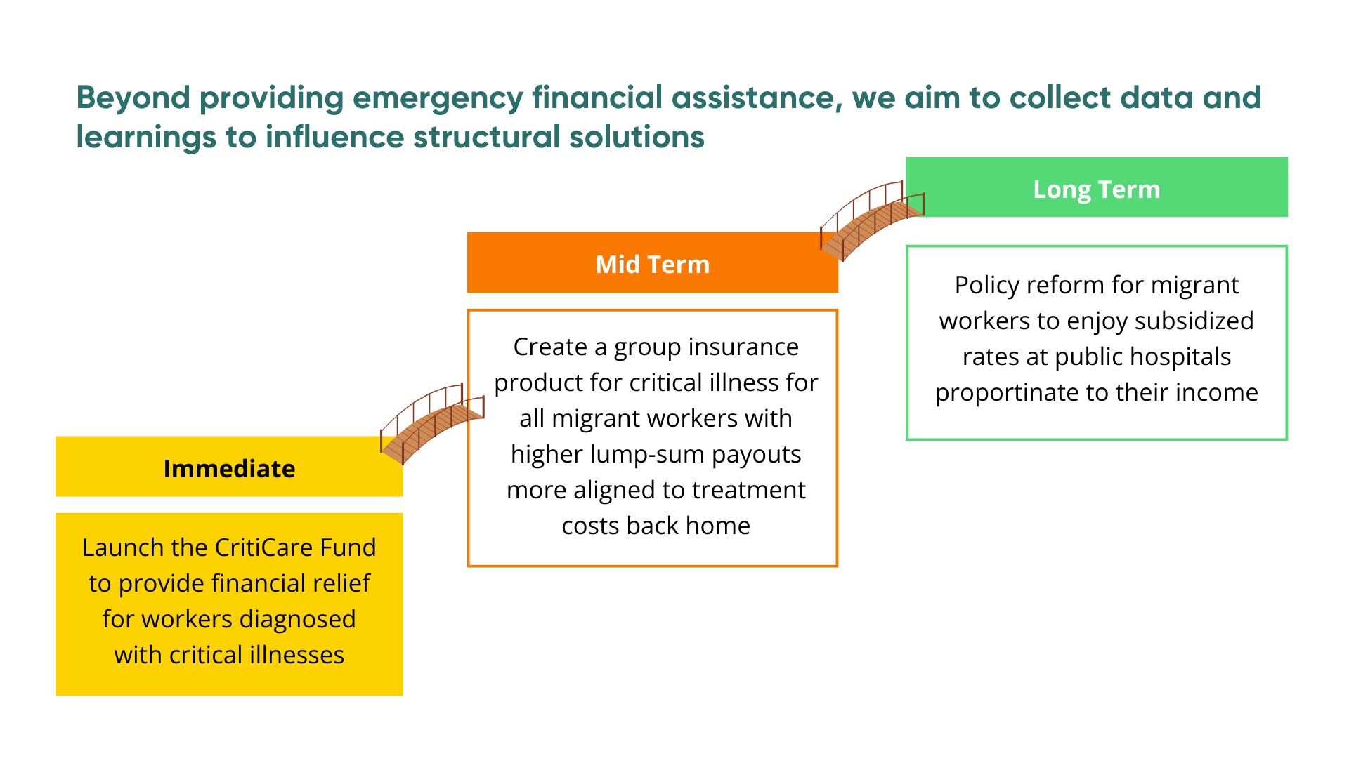 Over time, the Fund aims to collect data and insights to inform longer-term systemic reforms, including the potential development of group insurance products with meaningful critical illness coverage, and renewed discussions around subsidised outpatient care for migrant workers facing serious illness.