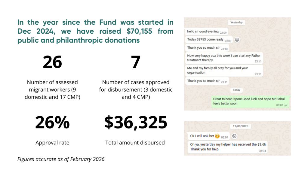 We are raising $410,500 to establish Singapore’s first community fund for migrant workers with critical illnesses