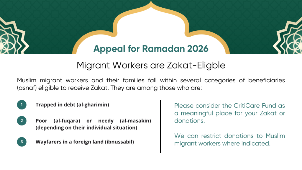 Beyond donating, you can amplify your impact by mobilizing your friends and family to donate to help migrant workers – the people who have sacrificed years away from their families to build our infrastructure and care for our children.