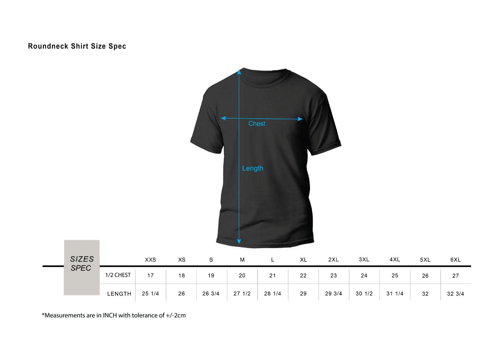 Generic T-Shirt Size Chart